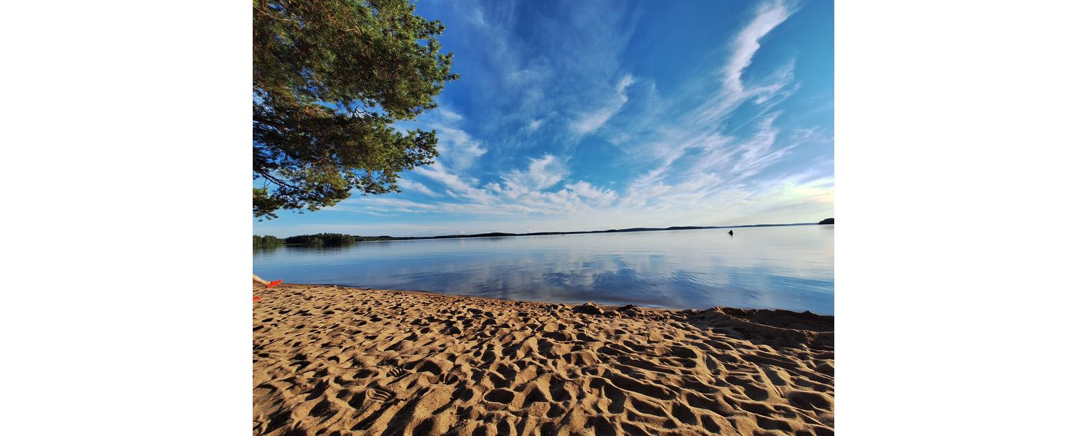 Yksi Papinniemen ehdottomista valttikorteista on sen sijainti kirkasvetisen Pyhäjärven rannassa. Saimme parkkeerata asuntovaunumme vain viiden metrin päähän rantaviivasta, mikä oli aivan uskomatonta! Lapset pääsivät pulikoimaan sydämensä kyllyydestä, ja me aikuiset nautimme auringosta ja järvimaisemasta. Pitkä sametinpehmeä hiekkaranta sopi täydellisesti hiekkalinnojen rakentamiseen ja rantaleikkeihin.